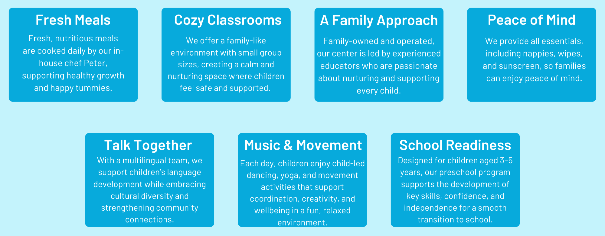 “This centre is beautiful! The educators are so kind and very passionate about the development and care of the children.”